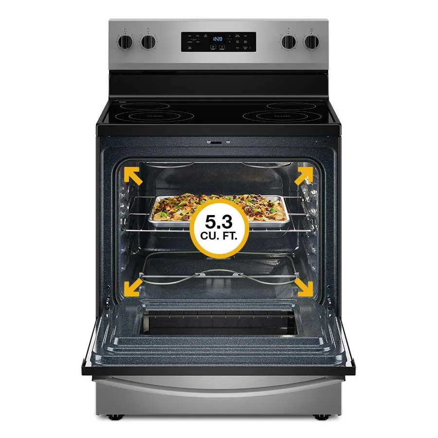 Aprovecha al máximo tu tiempo en la cocina con la estufa eléctrica Whirlpool de 30 pulgadas, un horno autolimpiante con elementos eléctricos duales y modo sin precalentamiento. Este horno convencional de 5.3 pies cúbicos con función de asado te ayuda a añadir un toque tostado o un toque derretido de magia a los clásicos familiares, y cuenta con un sensor de temperatura incorporado para ayudar a que el horno hornee de manera uniforme. Además, hierve un 40 % más rápido* con dos elementos radiantes duales FlexHeat™. *Al comparar el elemento de 9″ con el elemento de 6″ en la misma unidad.