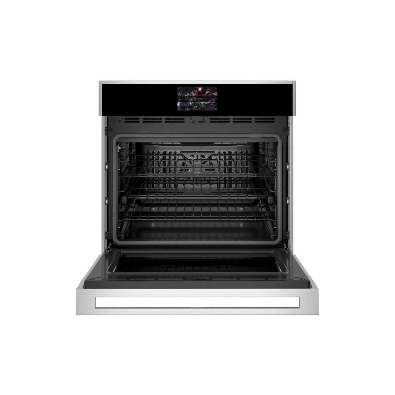 Horno eléctrico empotrado de pared simple inteligente de 30 pulgadas con 5 cu. Pie. Capacidad, conexión WiFi, escaneo para cocinar, verdadera convección europea, sonda de temperatura, autolimpieza, horneado retardado, control táctil, modo sabático y 2 hornos interiores halógenos.