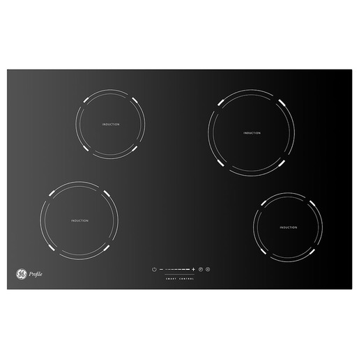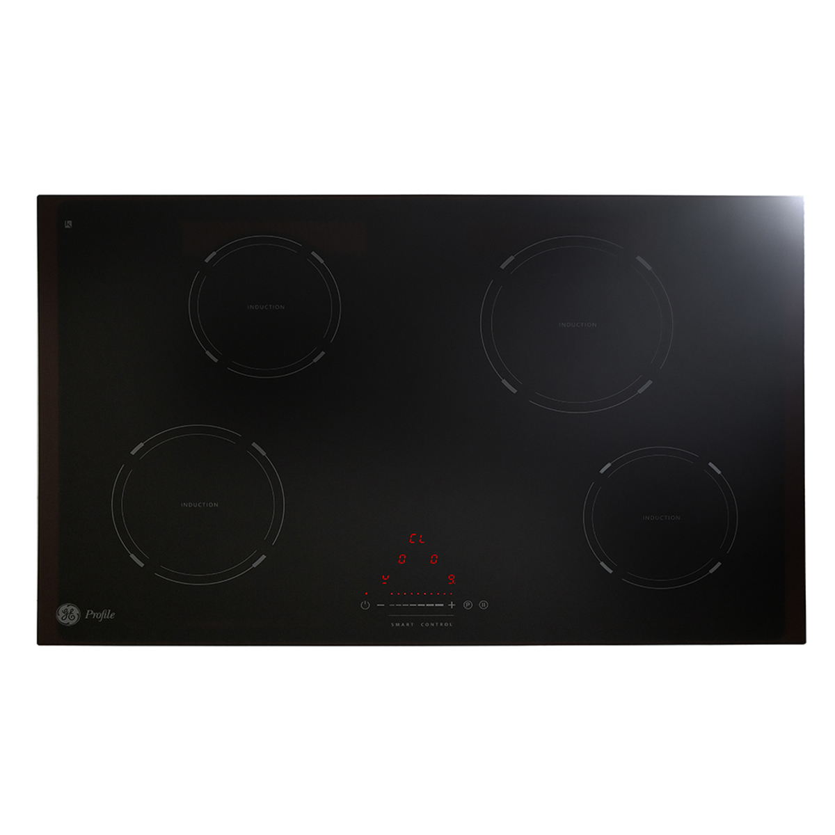 Parrilla GE Profile inducción 80cms eléctrica, vidrio negro, controles y display digital y 4 zonas de cocción.