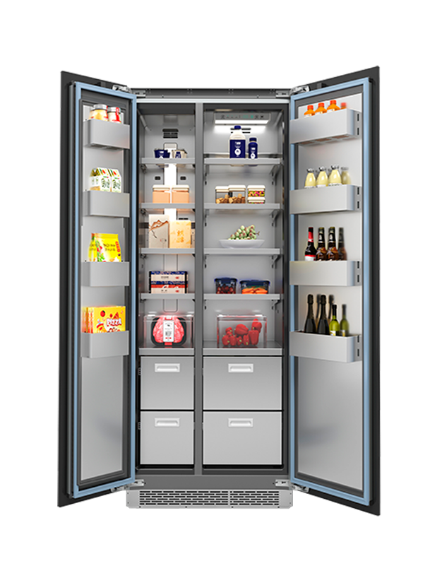 4 repisas de cristal y dos cajones en congelador y refrigerador
