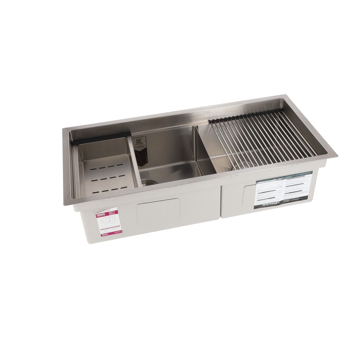 Renueva tu cocina con la tarja KELE KHD3717A, diseñada para ofrecer el equilibrio perfecto entre funcionalidad y estética. Con una profundidad de 254 mm y un amplio contorno de 940 x 450 mm, esta tarja te brinda el espacio ideal para lavar cómodamente ollas, sartenes y utensilios de gran tamaño. Fabricada en calibre 16, garantiza durabilidad y resistencia al uso diario, manteniéndose en perfectas condiciones con el paso del tiempo. Su acabado cepillado no sólo aporta un toque moderno y elegante, sino que también facilita la limpieza, ayudando a mantener tu cocina siempre impecable. Además, su recubrimiento posterior de poliuretano reduce el ruido al lavar, creando un ambiente más tranquilo y agradable. Para una experiencia completa, la tarja KELE KHD3717A incluye accesorios, ofreciéndote todo lo que necesitas para optimizar tu espacio. Haz de tu cocina un lugar más práctico y sofisticado con la tarja KELE KHD3717A.