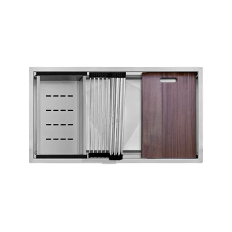 Esta tarja ofrece una solución completa con su diseño de doble tina y accesorios funcionales. El acabado cepillado y las esquinas Small Angle R10 le dan un toque moderno y elegante, mientras que la versatilidad de instalación la hace adaptable a diferentes estilos de cocina.